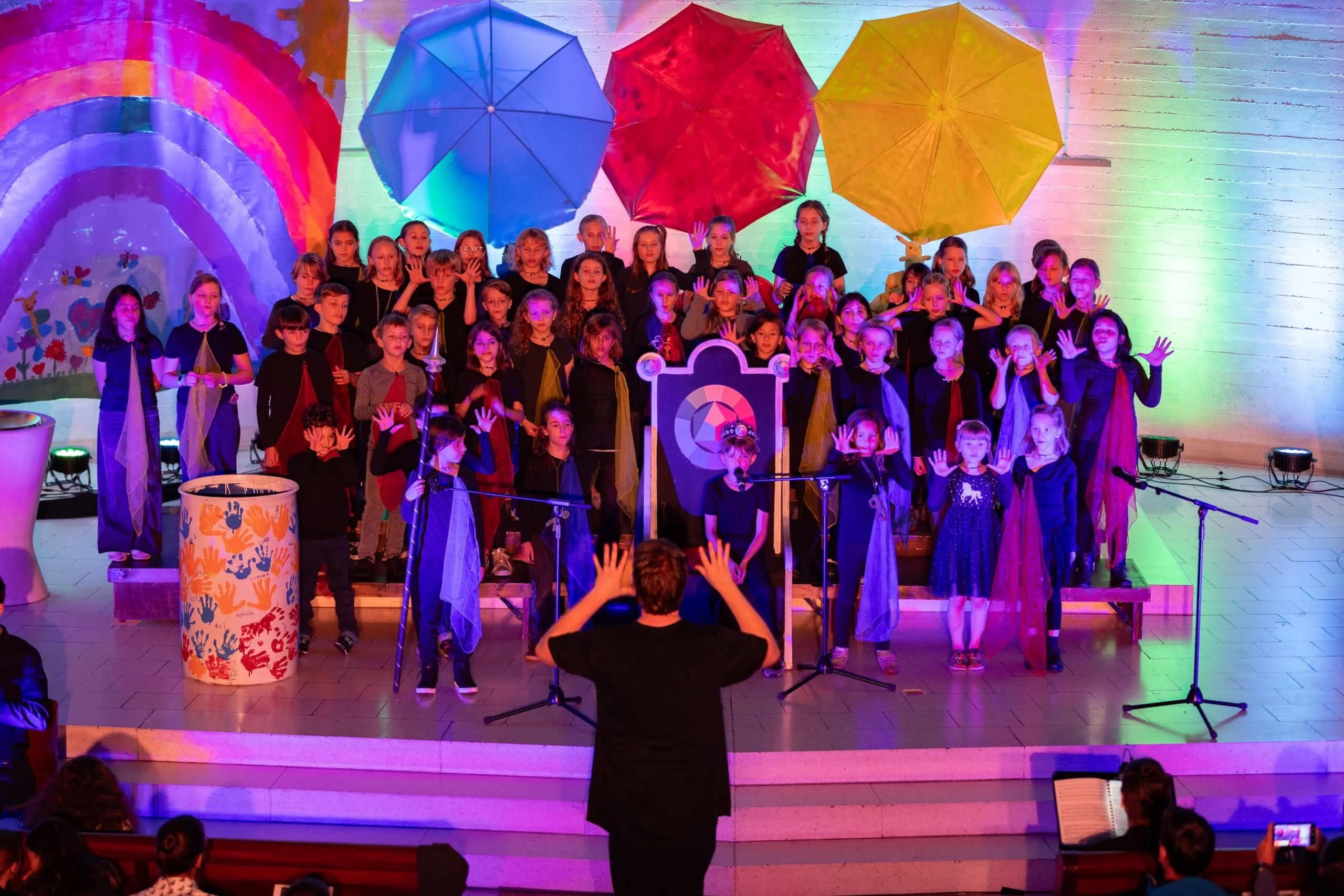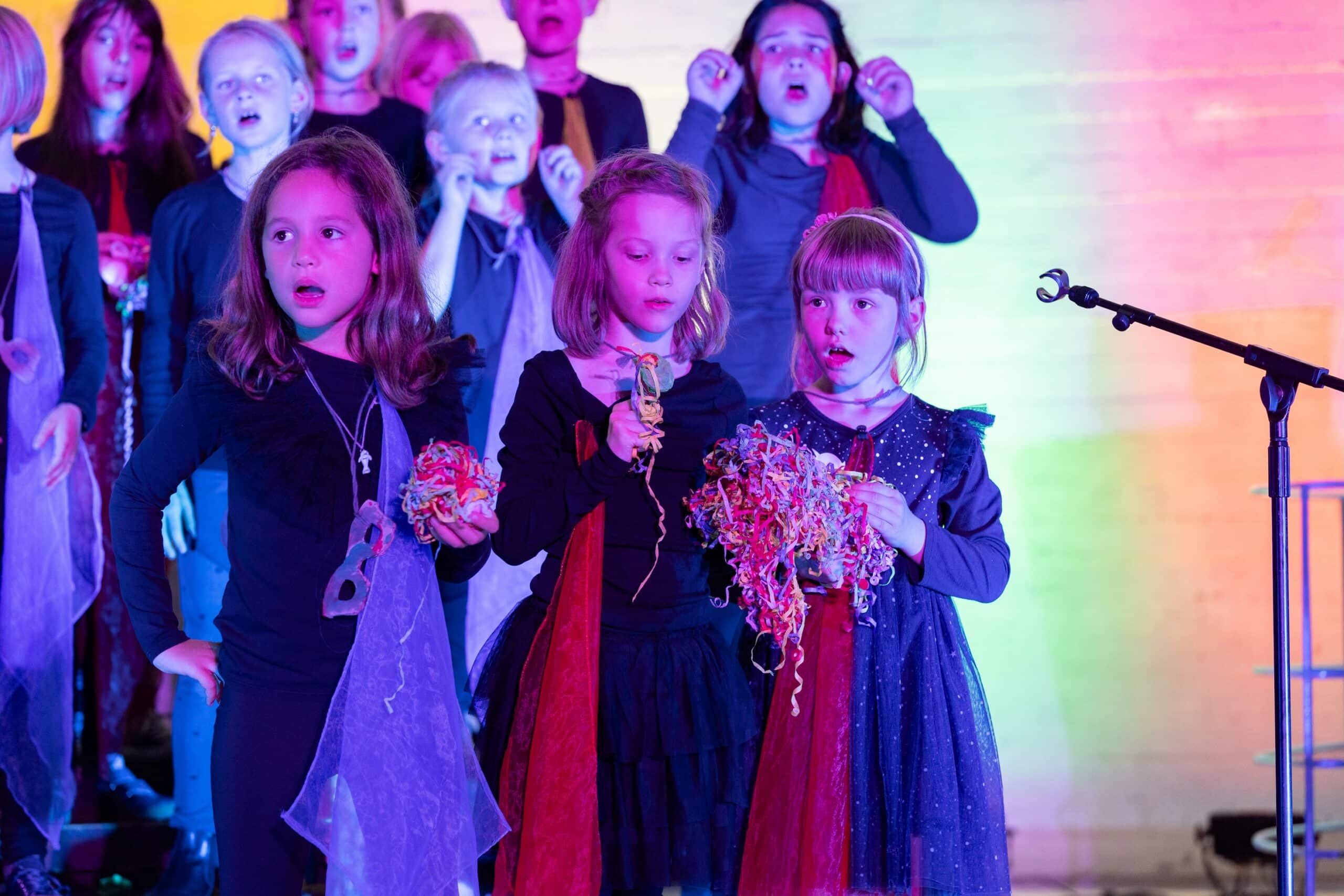 Die jungen Sängerinnen und Sänger begeisterten das Publikum mit mitreißenden Melodien, Schauspiel und einem knall- und quietschbunten Bühnenbild. Unterstützt durch eine Instrumentalcombo präsentierten sie zahlreiche Ohrwürmer, für die sie mit stürmischem Applaus und dem Wunsch nach einer Zugabe belohnt wurden, der umgehend erfüllt wurde.